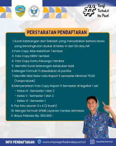 7. Memiliki Nilai Rata-rata Raport 5 semester Minimal 75,00 ( Tanpa Mulok )
